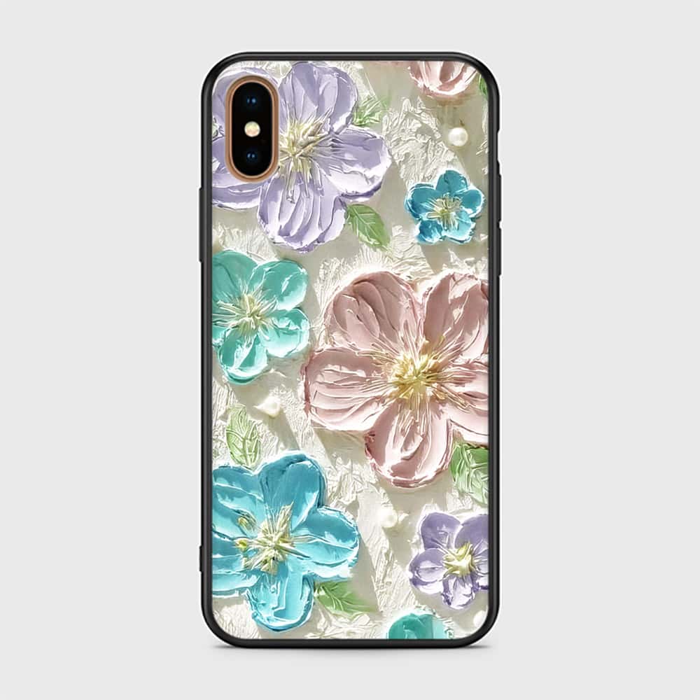 iPhone XS Max Cover - Floral Series - Design 14 - Blue & Purple - HQ Ultra Shine Premium Infinity Glass Soft Silicon Borders Case