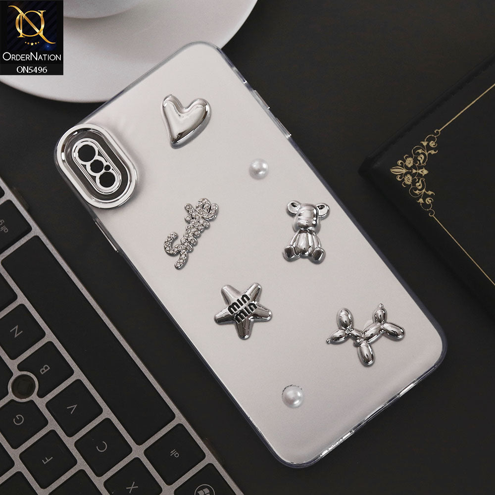 iPhone XS Max Cover - Silver - 3D Smile Cartoon Matte Shinny Case With Camera Protection Soft Border Case
