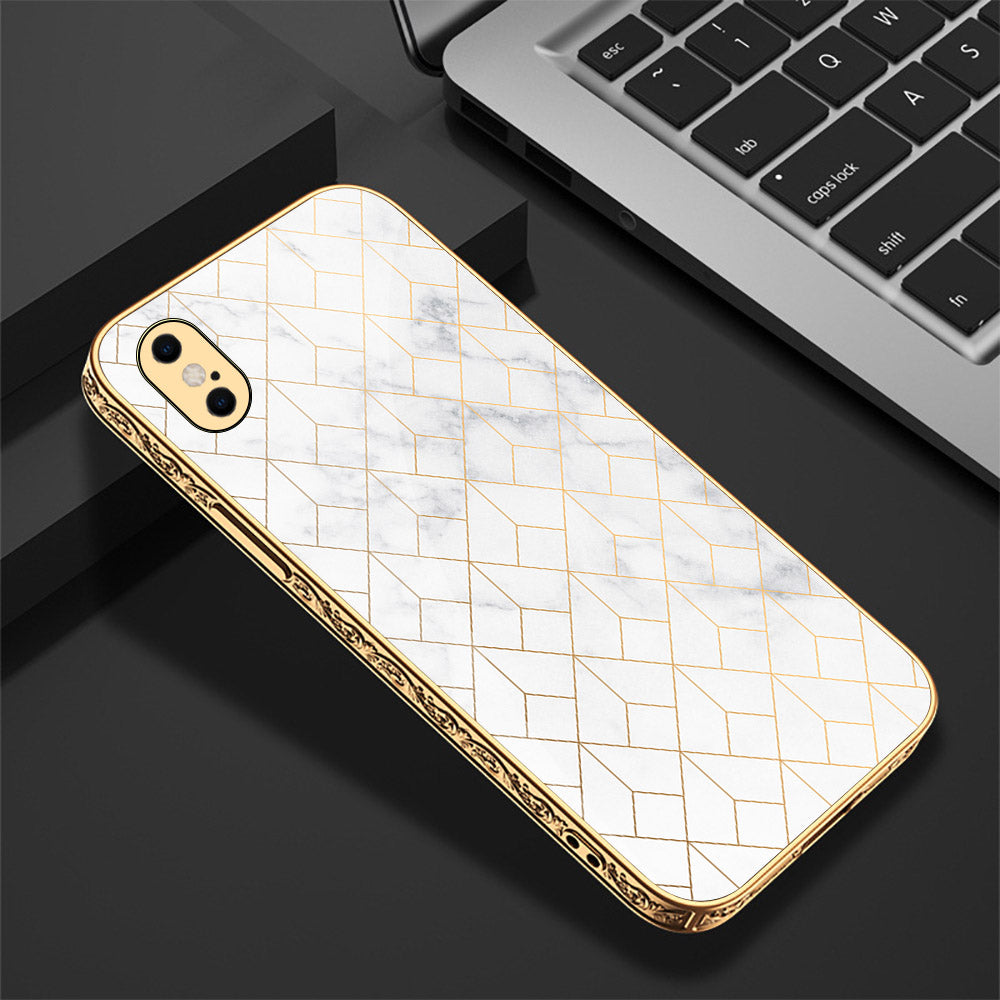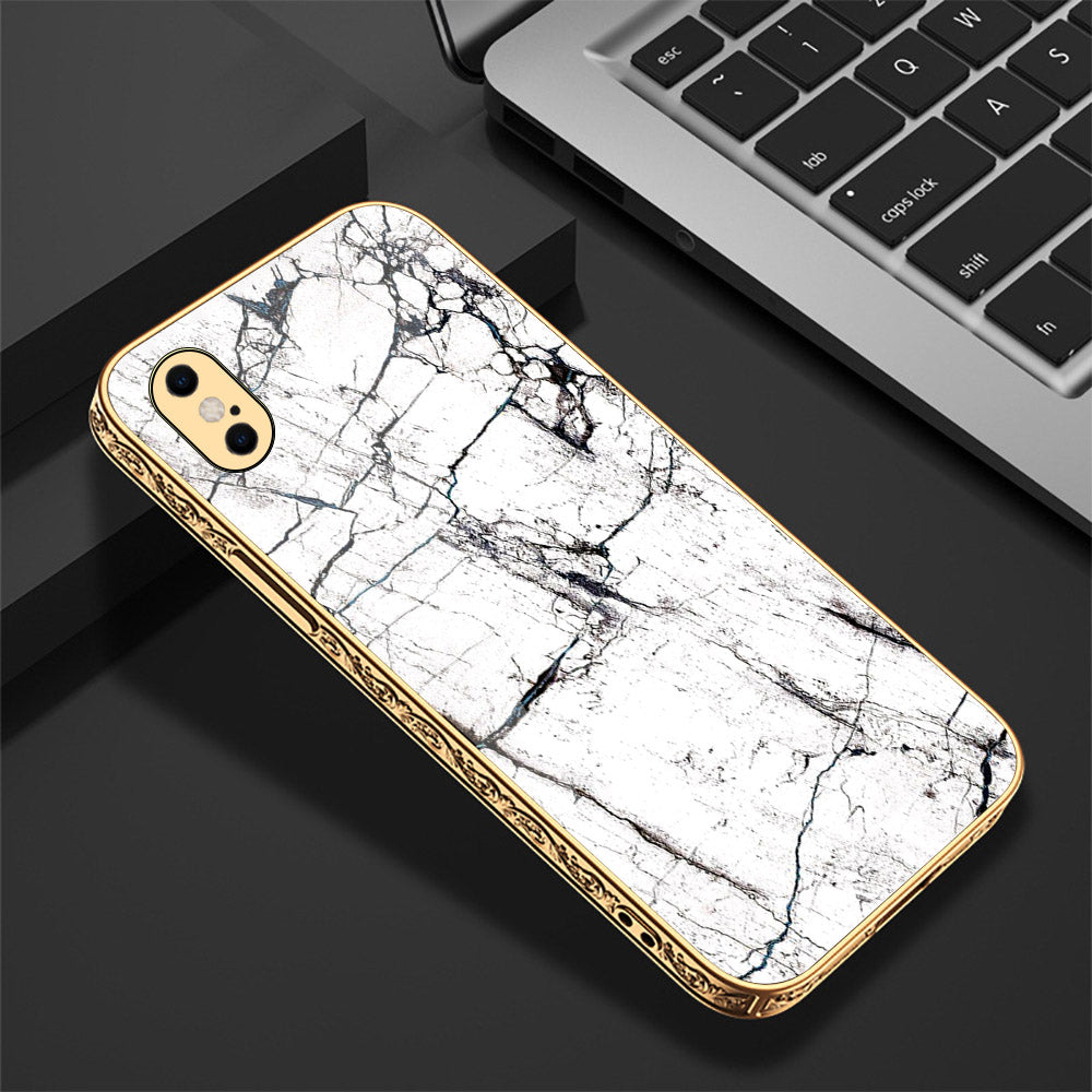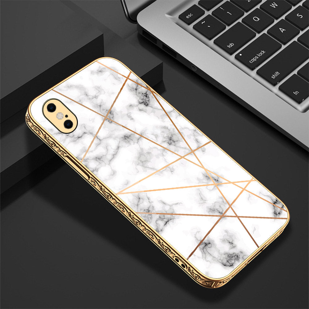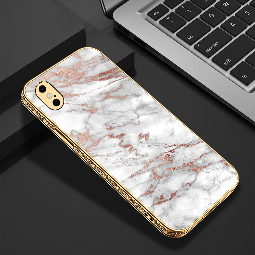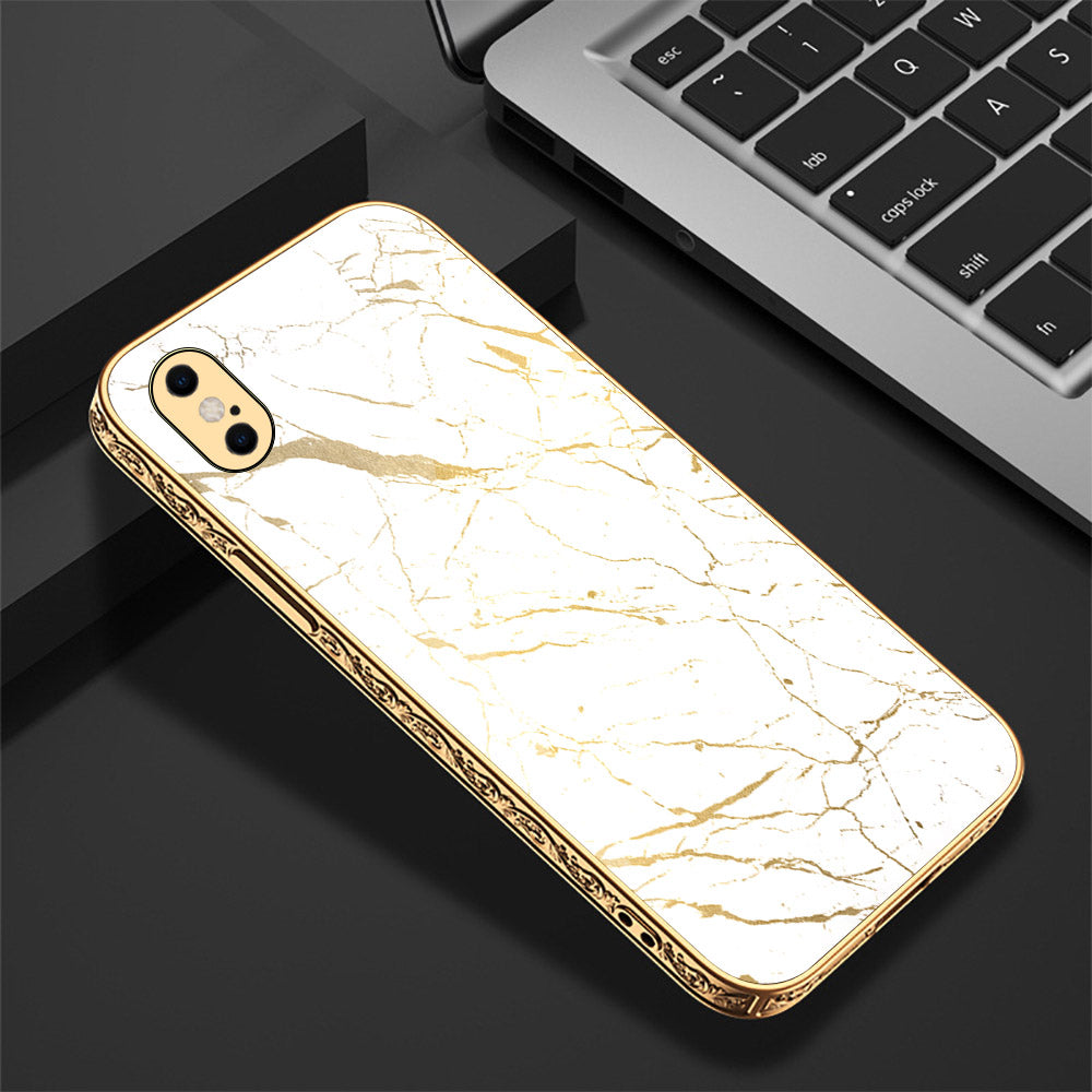 iPhone XS Max Cover - White Marble Series 2 - Premium Electroplated Shutterproof Case Soft Silicon Borders Case