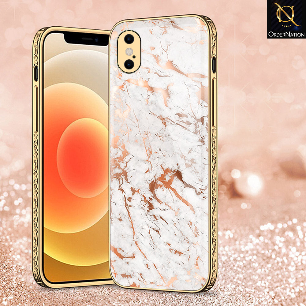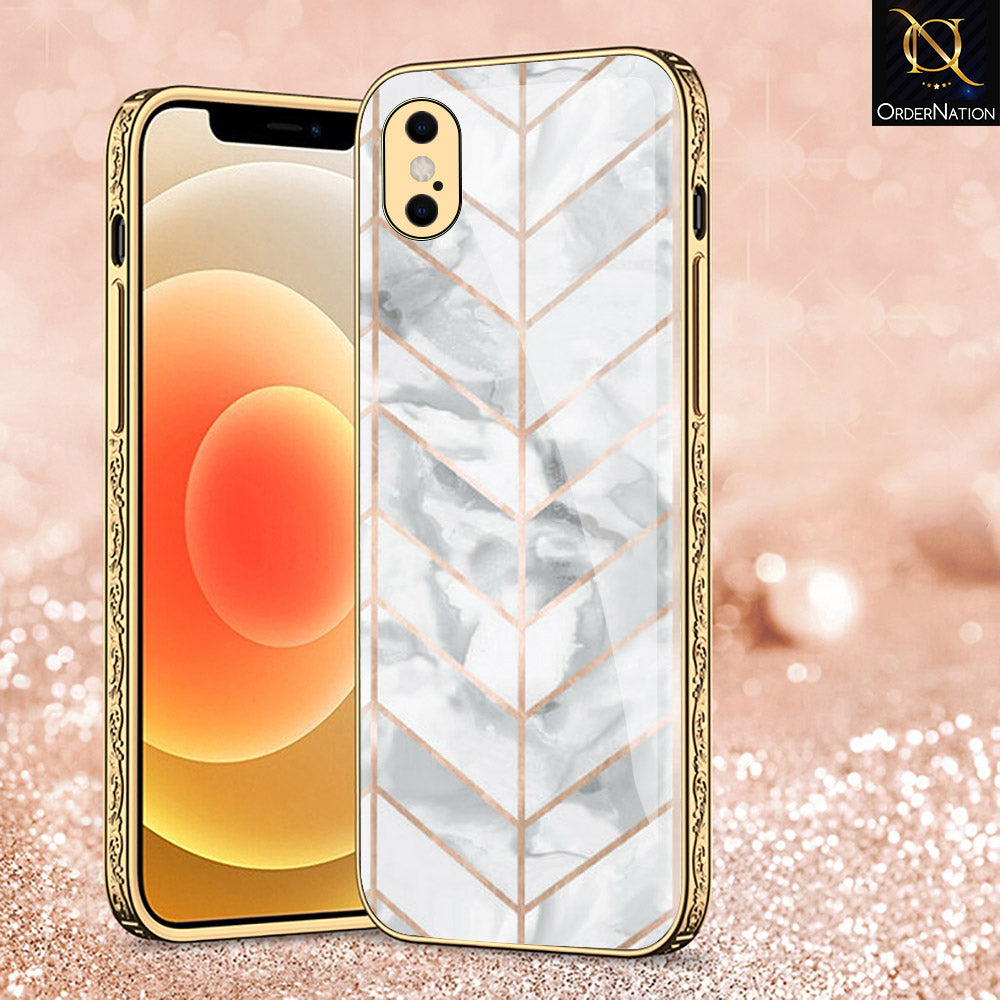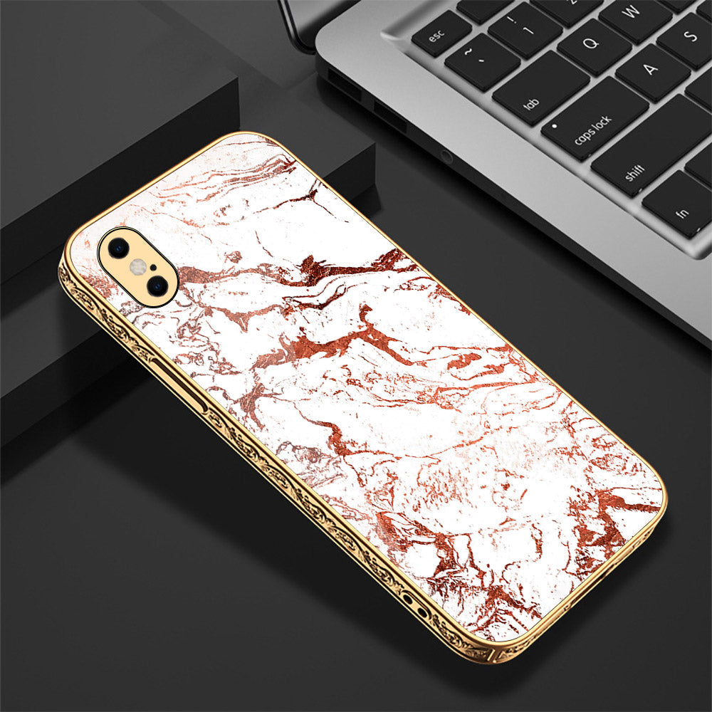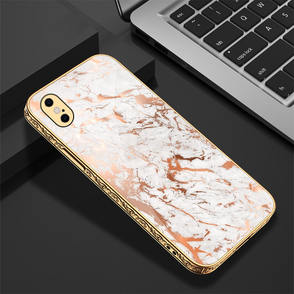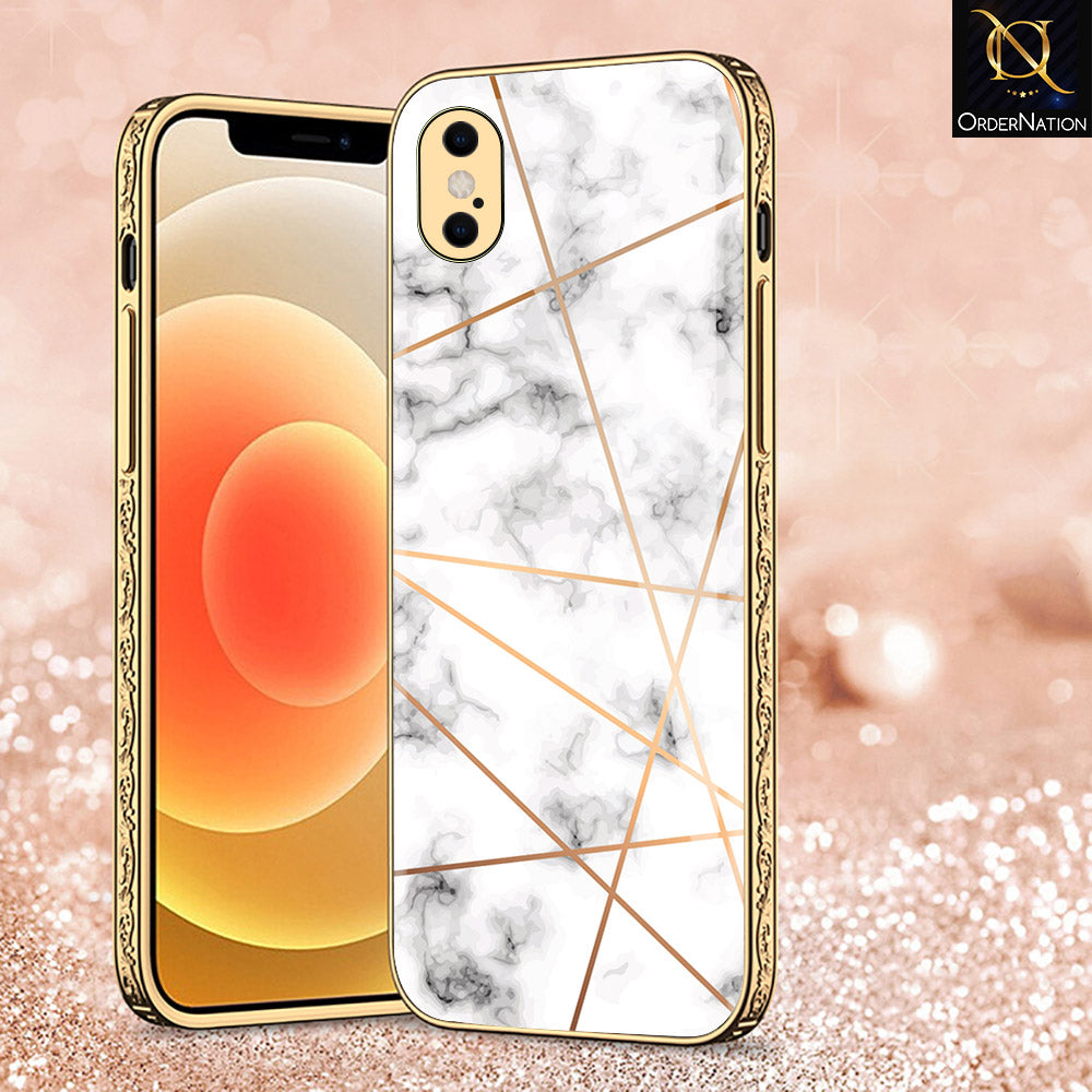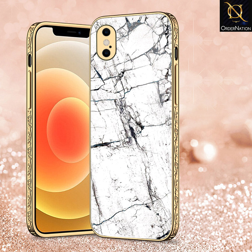 iPhone XS Max Cover - White Marble Series 2 - Premium Electroplated Shutterproof Case Soft Silicon Borders Case