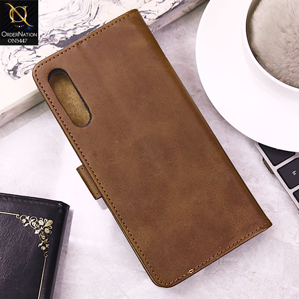 LG Velvet 5G UW Cover - Dark Brown -  Premium Leather Megantic Flip Book Covers With Card Holding Option