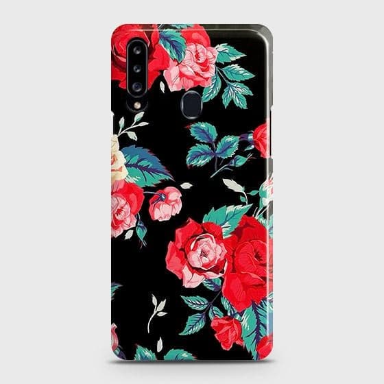 Samsung Galaxy A20s Cover - Luxury Vintage Red Flowers Printed Hard Case with Life Time Colors Guarantee