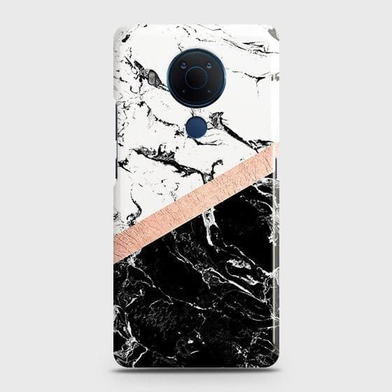 Nokia 5.4 Cover - Black & White Marble With Chic RoseGold Strip Case with Life Time Colors Guarantee
