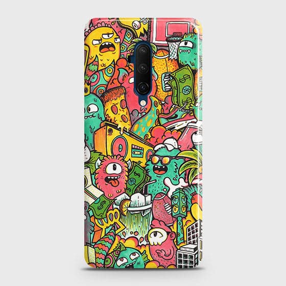 OnePlus 7T Pro Cover - Matte Finish - Candy Colors Trendy Sticker Collage Printed Hard Case with Life Time Colors Guarantee
