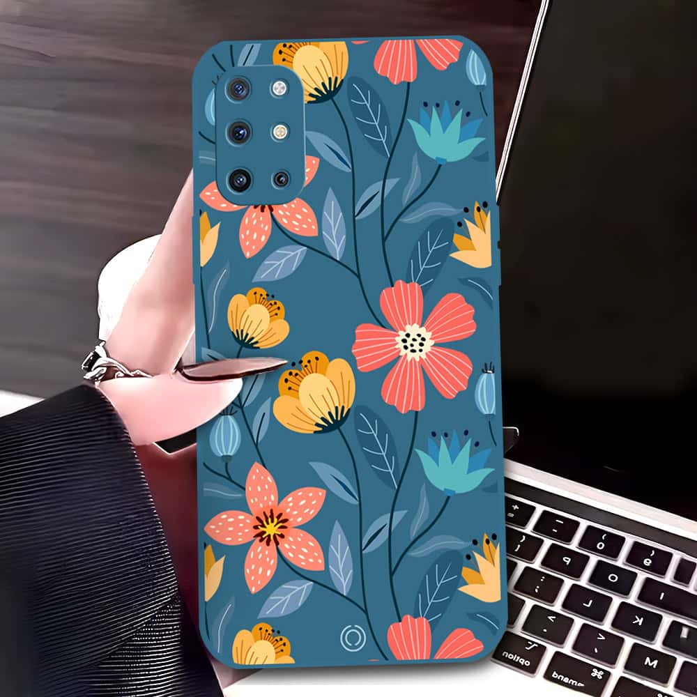 OnePlus 8T Cover - Blue - D2 - ONation Floral Series - HQ Liquid Silicone Soft Case