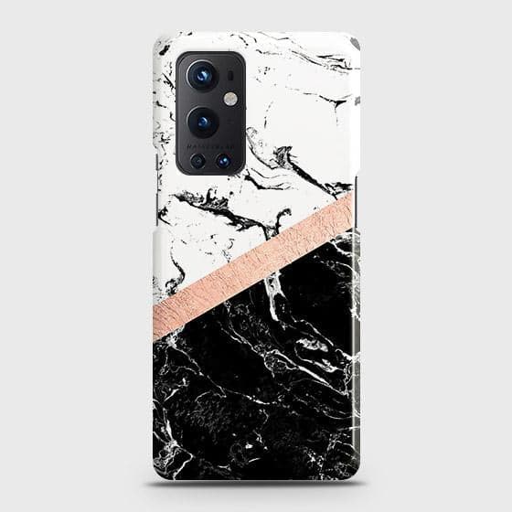 OnePlus 9 Pro Cover - Black & White Marble With Chic RoseGold Strip Case with Life Time Colors Guarantee