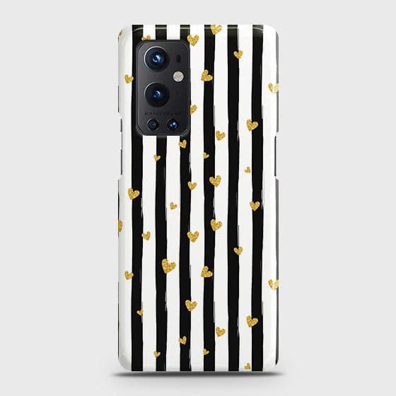 OnePlus 9 Pro Cover - Trendy Black & White Lining With Golden Hearts Printed Hard Case with Life Time Colors Guarantee