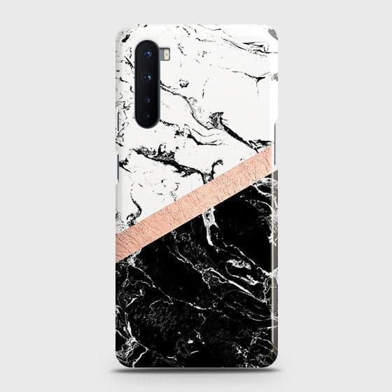 OnePlus Nord Cover - Black & White Marble With Chic RoseGold Strip Case with Life Time Colors Guarantee b-72