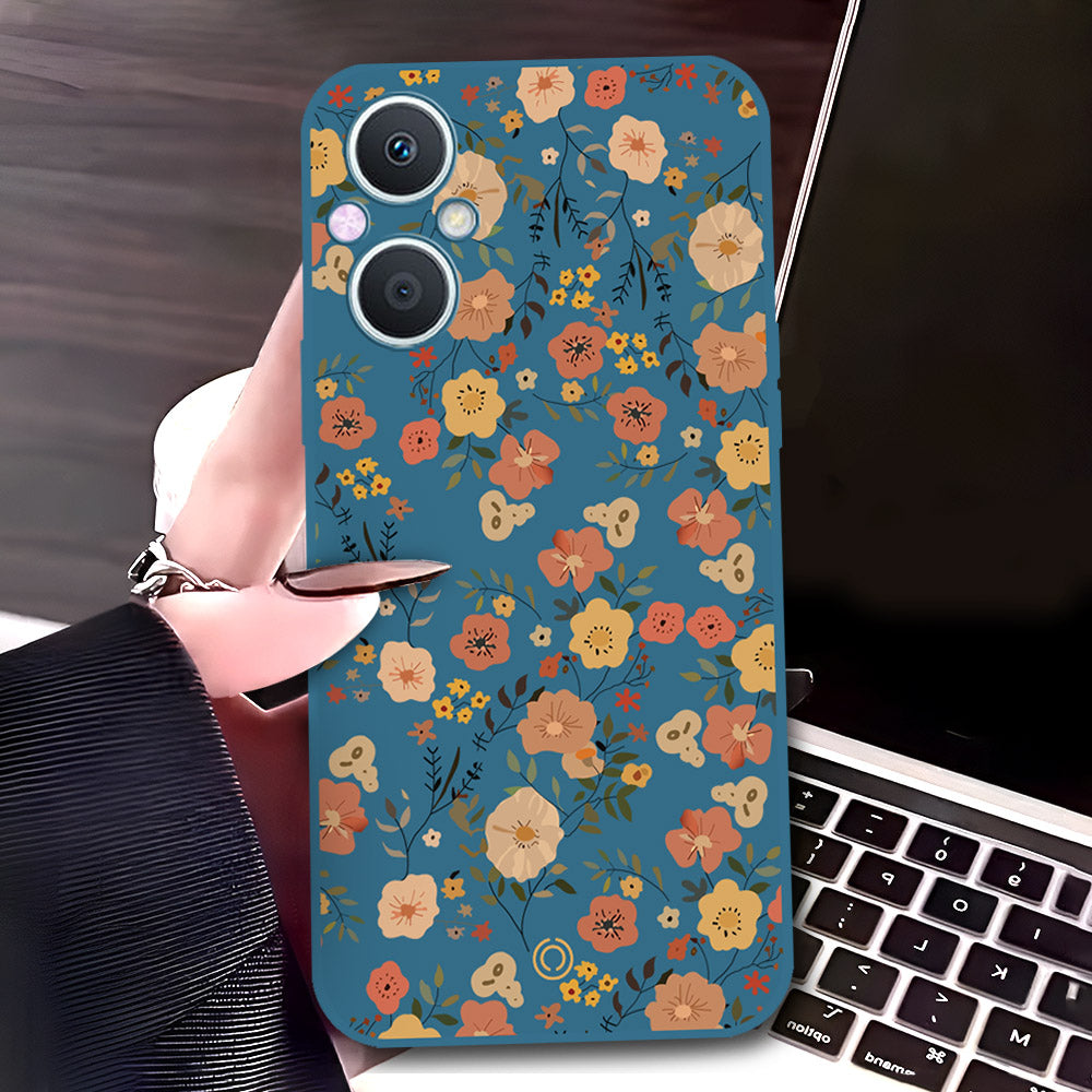 OnePlus Nord N20 5G Cover - Blue - D3 - ONation Floral Series - HQ Liquid Silicone Soft Case