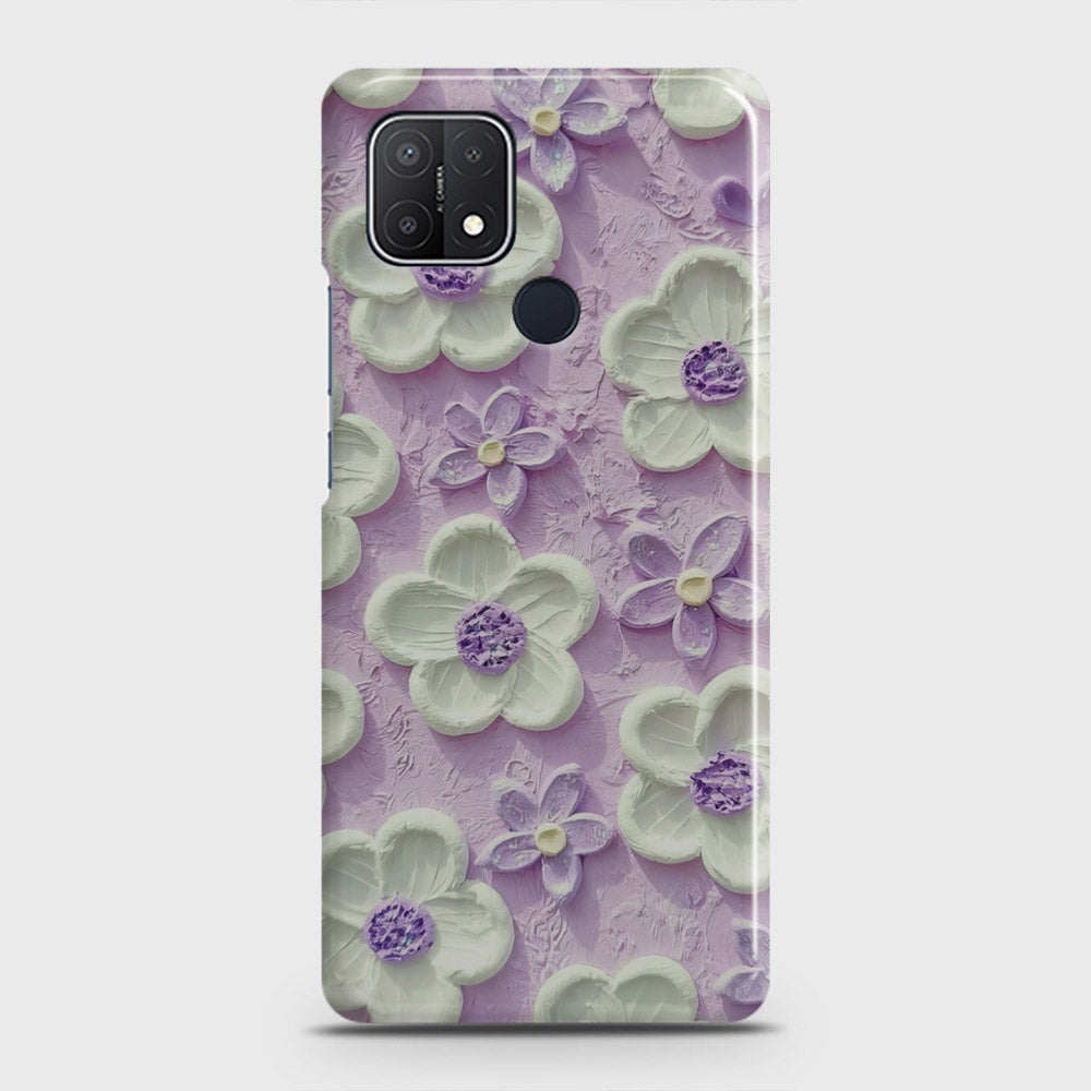 Oppo A15s Cover - Floral Series - Design 4 - Purple & White - Matte Finish - Snap On Hard Case with LifeTime Colors Guarantee