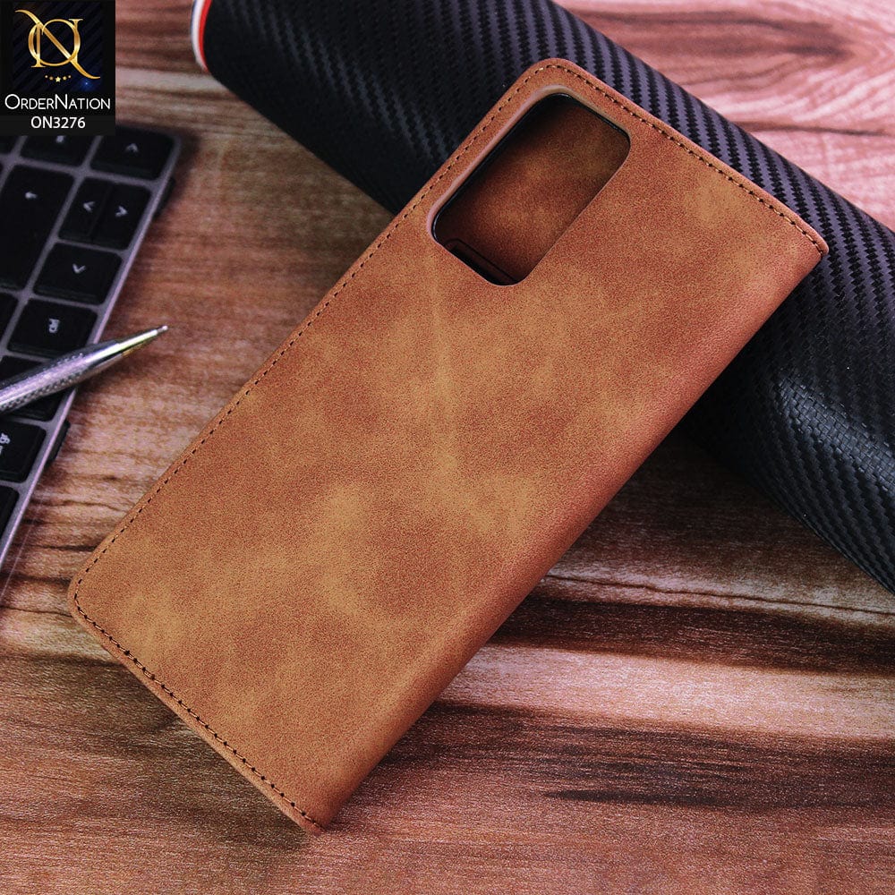 Oppo A16 Cover - Light Brown - ONation Business Flip Series - Premium Magnetic Leather Wallet Flip book Card Slots Soft Case