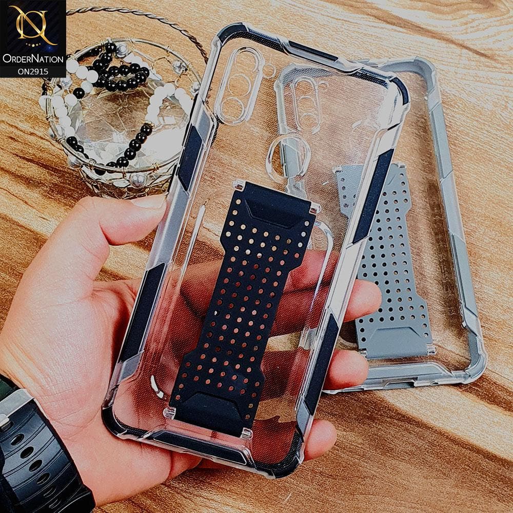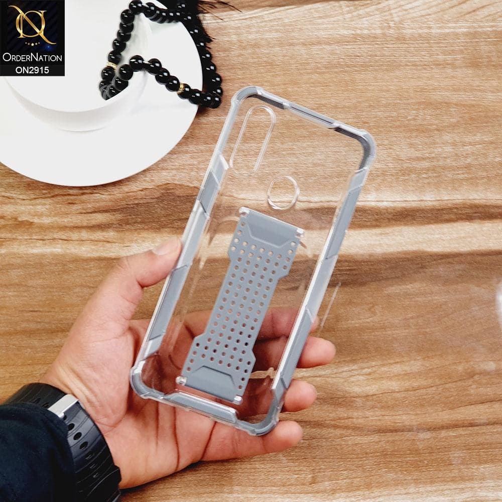 Oppo A31 Cover - Gray - New Style Hybrid Soft Bumper Finger Grip Holder Transparent Case