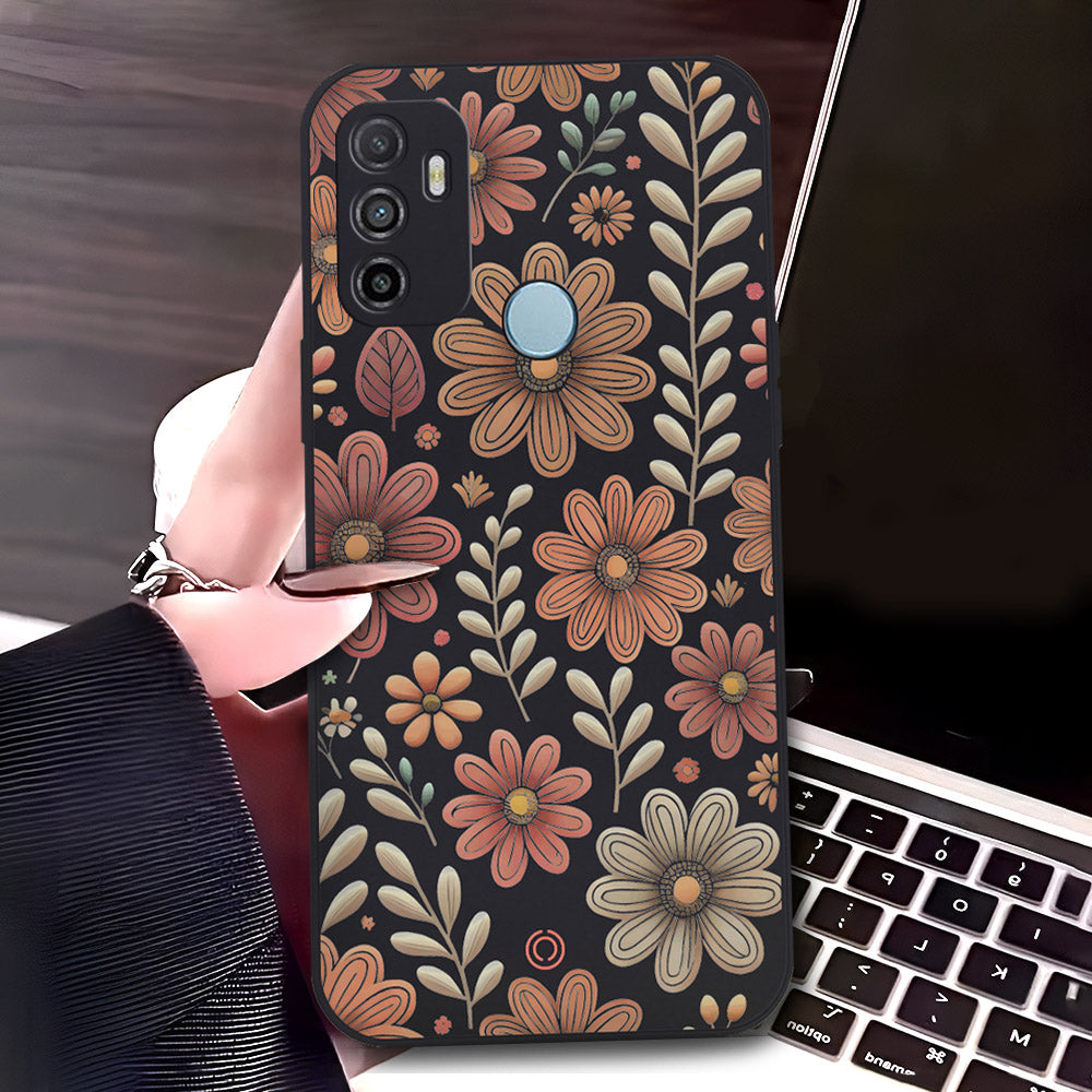 Oppo A53 Cover - Black - D4 - ONation Floral Series - HQ Liquid Silicone Soft Case