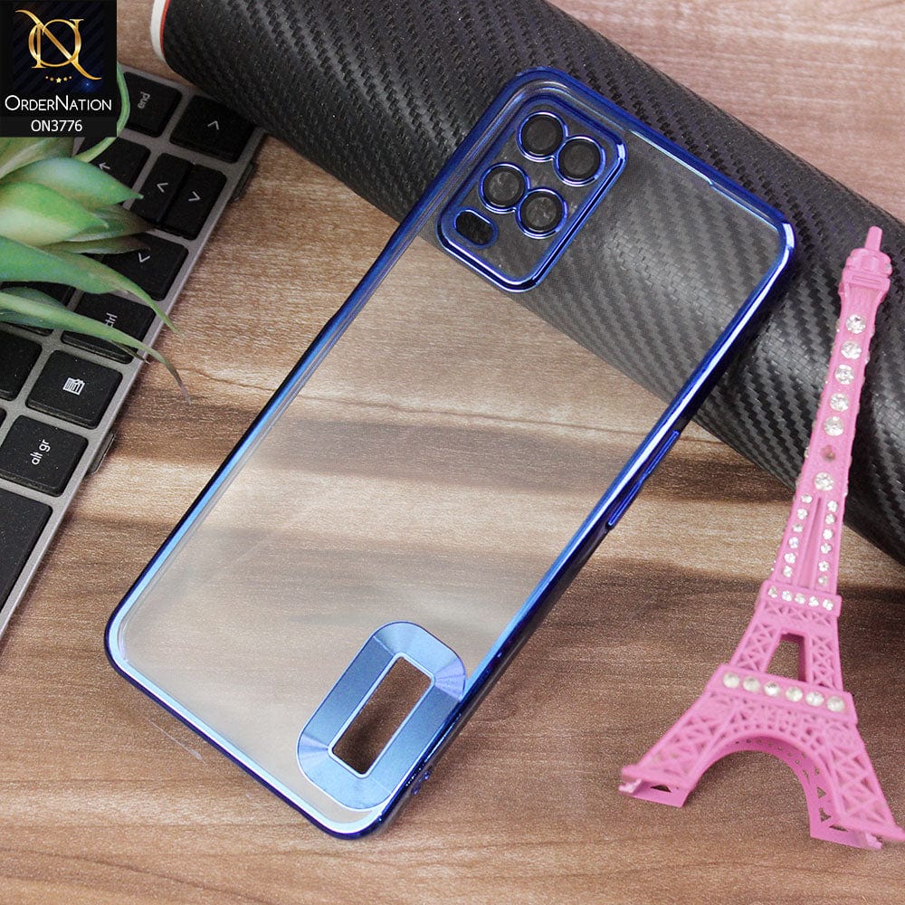 Oppo A54 4G Cover - Blue - Electroplating Borders Logo Hole Camera Lens Protection Soft Silicone Case
