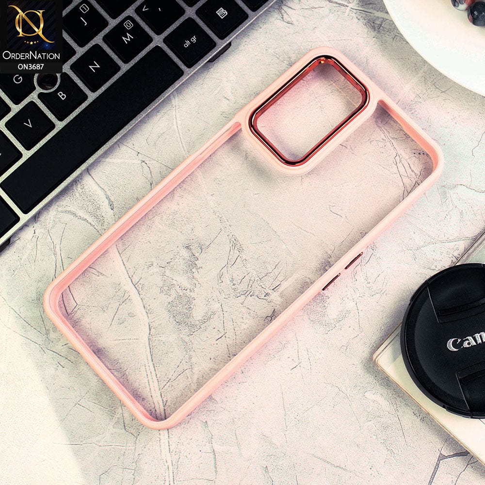 Oppo A54 4G Cover - Pink - New Electroplating Camera Ring Colored Soft Silicon Borders Protective Clear Back Case