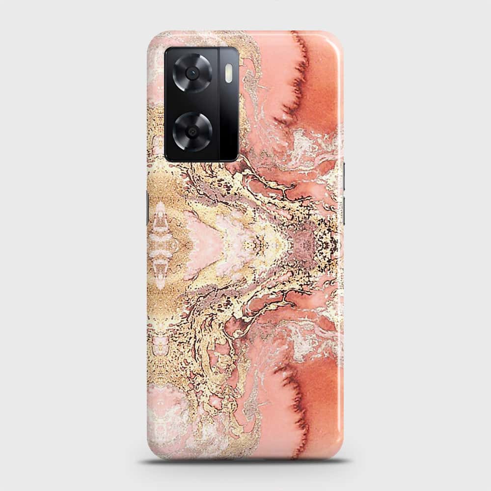 Oppo A57 4G 2022 Cover - Trendy Chic Rose Gold Marble Printed Hard Case with Life Time Colors Guarantee