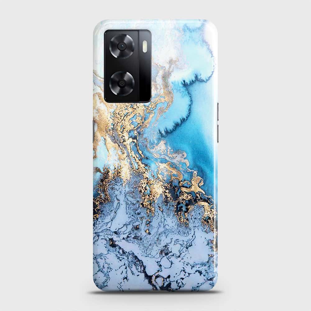 Oppo A57 4G 2022 Cover - Trendy Golden & Blue Ocean Marble Printed Hard Case with Life Time Colors Guarantee