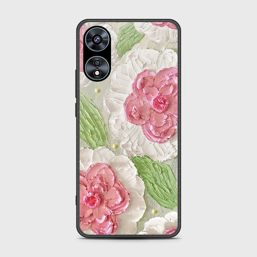 Oppo A58 4G Cover - Floral Series - Design 13 - Offwhite & Green - HQ Ultra Shine Premium Infinity Glass Soft Silicon Borders Case