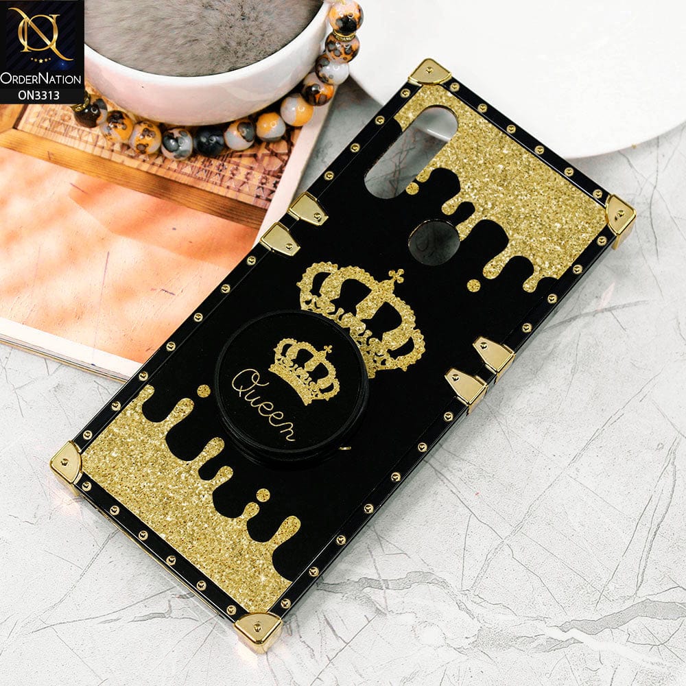 Infinix Note 7 Cover - Black - Golden Electroplated Luxury Square Soft TPU Protective Case with Popsocket Holder