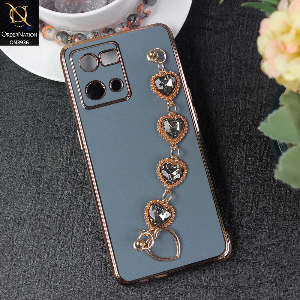 Oppo F21 Pro 4G Cover - Blue - New Electroplating Silk Shiny Camera Bumper Soft Case With Heart Chain Holder
