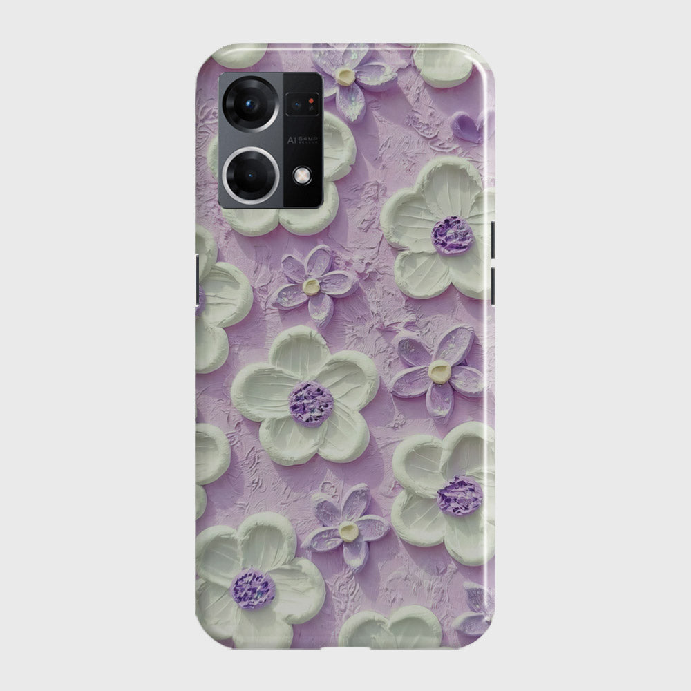 Oppo F21 Pro 4G Cover - Floral Series - Design 4 - Purple & White - Matte Finish - Snap On Hard Case with LifeTime Colors Guarantee