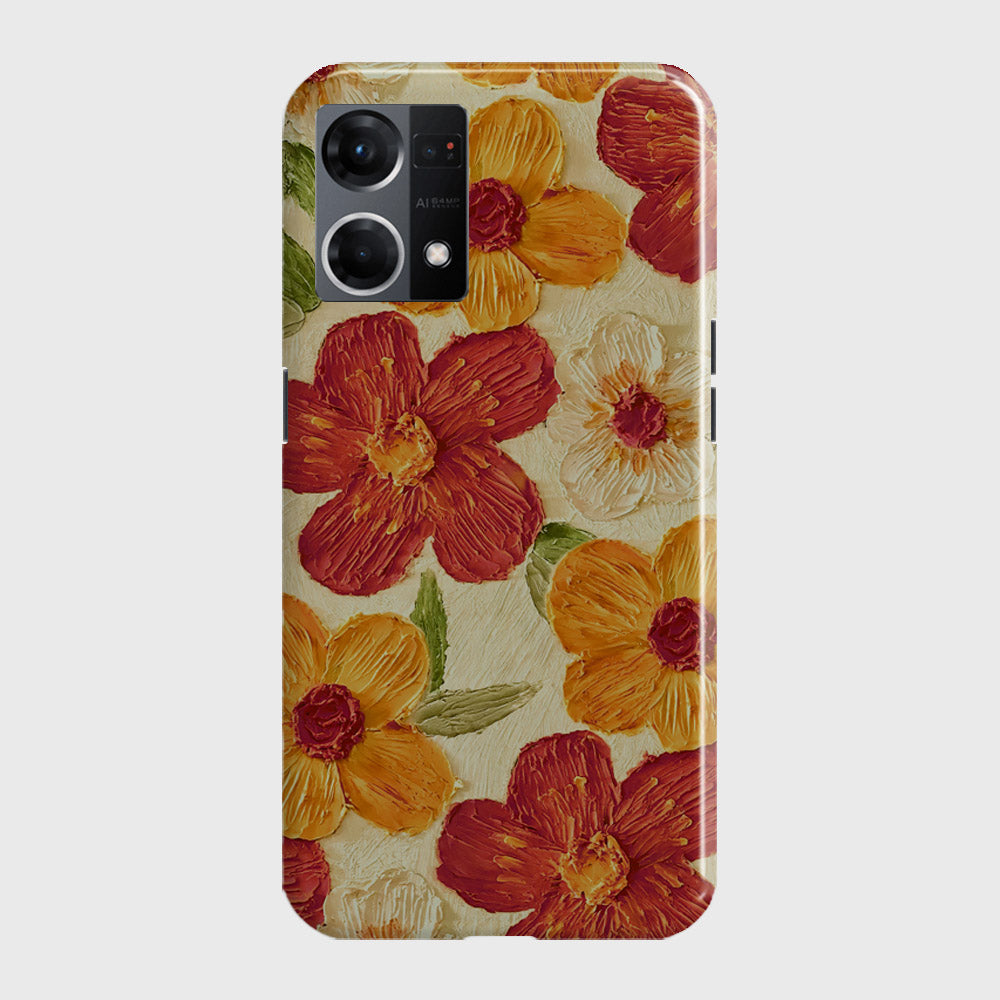 Oppo F21 Pro 4G Cover - Floral Series - Design 6 - Red & Orange - Matte Finish - Snap On Hard Case with LifeTime Colors Guarantee