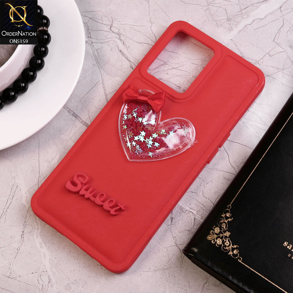 Oppo F21 Pro 4G Cover - Red - New Trendy 3D Love Heart (Moving Shiny Stars Glitter) & Bow Candy Color Soft Silicon Case