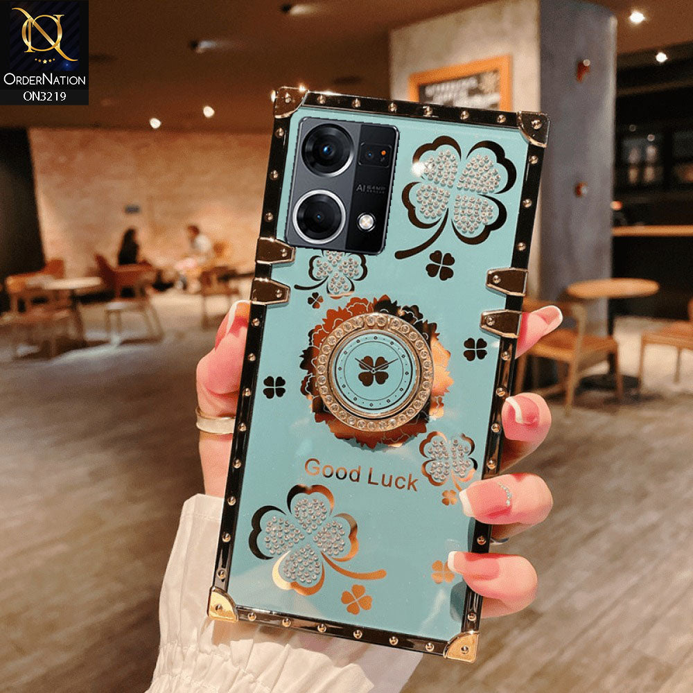 Oppo F21 Pro 4G Cover - Seafoam Green - Square Bling Diamond Glitter Soft TPU Trunk Case with Ring Holder