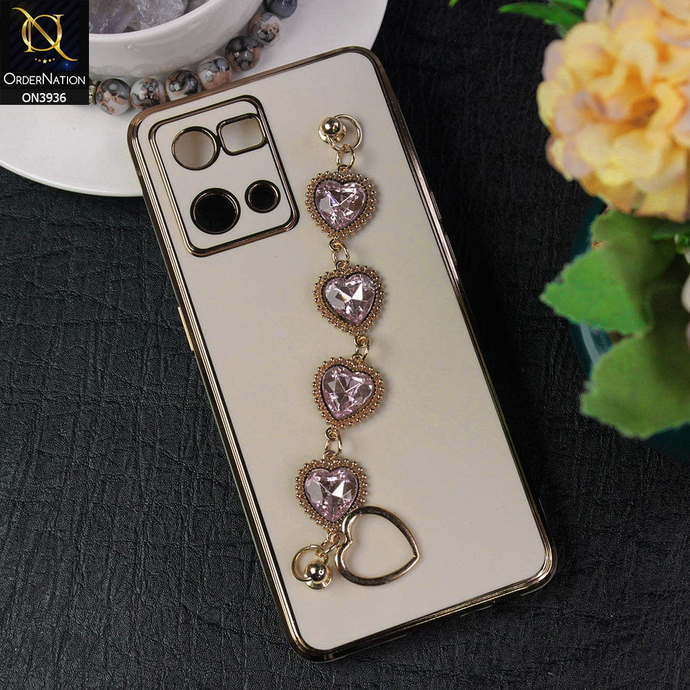 Oppo F21 Pro 4G Cover - White - New Electroplating Silk Shiny Camera Bumper Soft Case With Heart Chain Holder