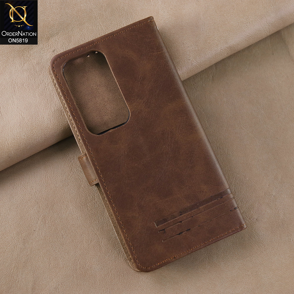 Oppo Reno 12 Cover - Dark Brown -  Way Out Excellence Quality Soft Tpu Leather Flip Book With Card Holding Slots