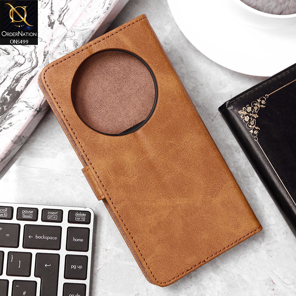 Oppo Reno 12F Cover - Light Brown - Premium PU Leather Magnetic Flip Book Card Slots Wallet Soft Case