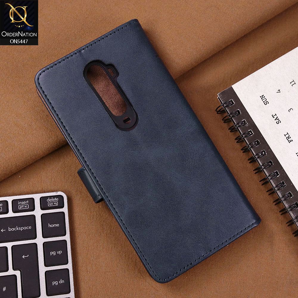 Oppo Reno 2Z Cover - Blue - Premium Leather Megantic Flip Book Covers With Card Holding Option