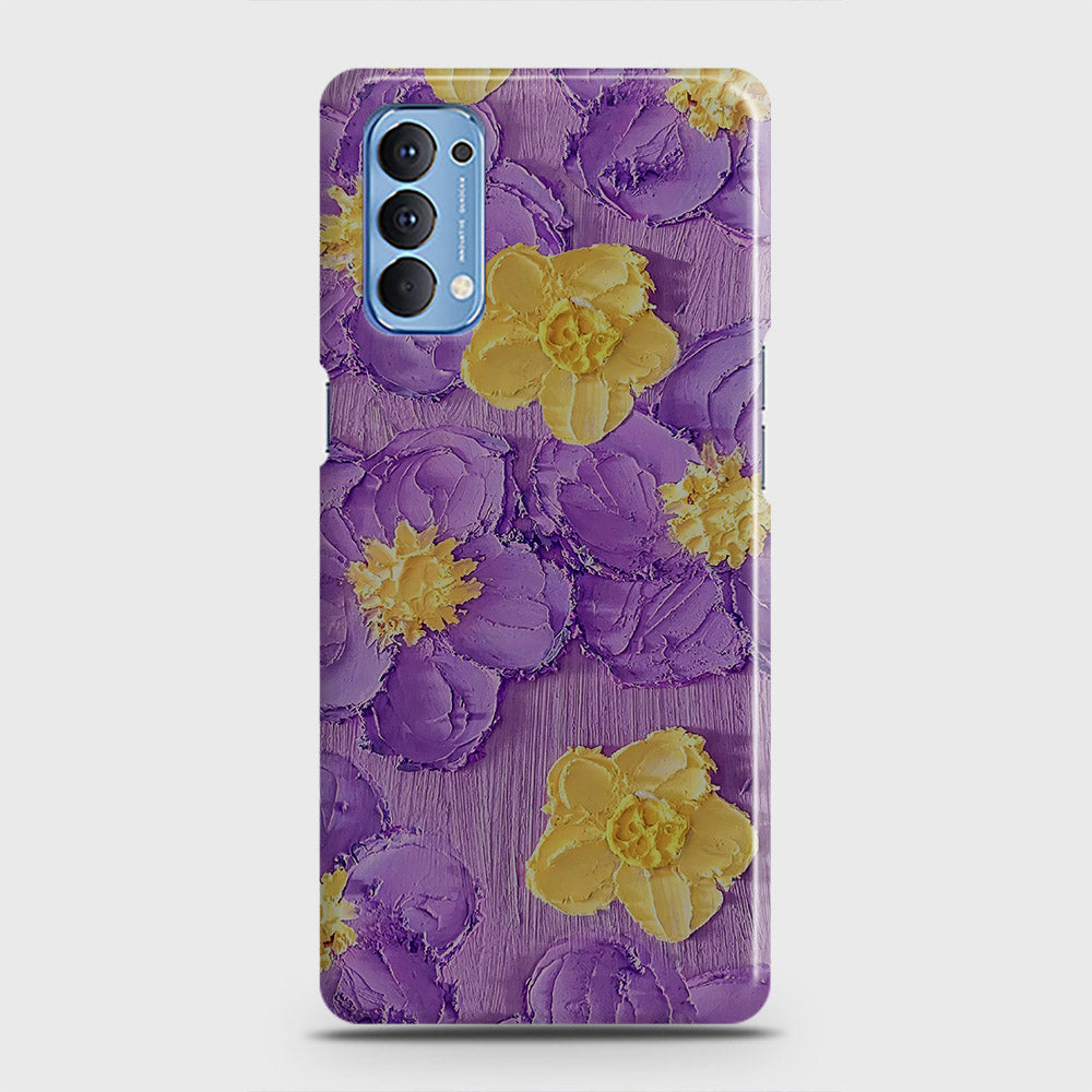 Oppo Reno 4 4G Cover - Floral Series - Design 8 - Purple & Yellow - Matte Finish - Snap On Hard Case with LifeTime Colors Guarantee