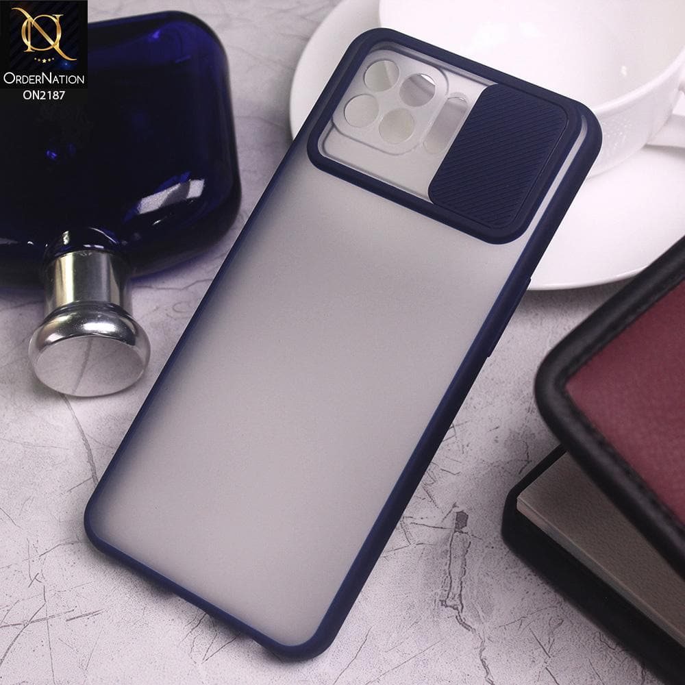 Oppo Reno 4 Lite Cover - Blue - Translucent Matte Shockproof Camera Slide Protection Case