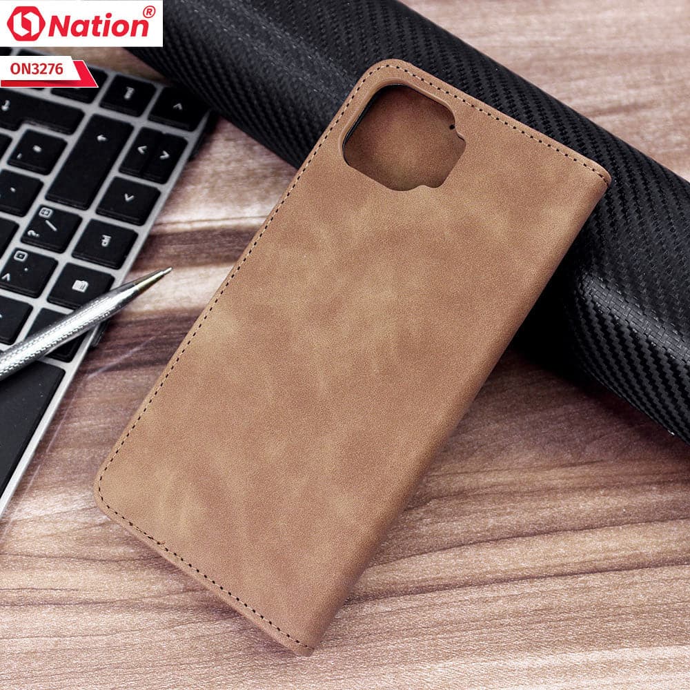 Oppo Reno 4 Lite Cover - Light Brown - ONation Business Flip Series - Premium Magnetic Leather Wallet Flip book Card Slots Soft Case