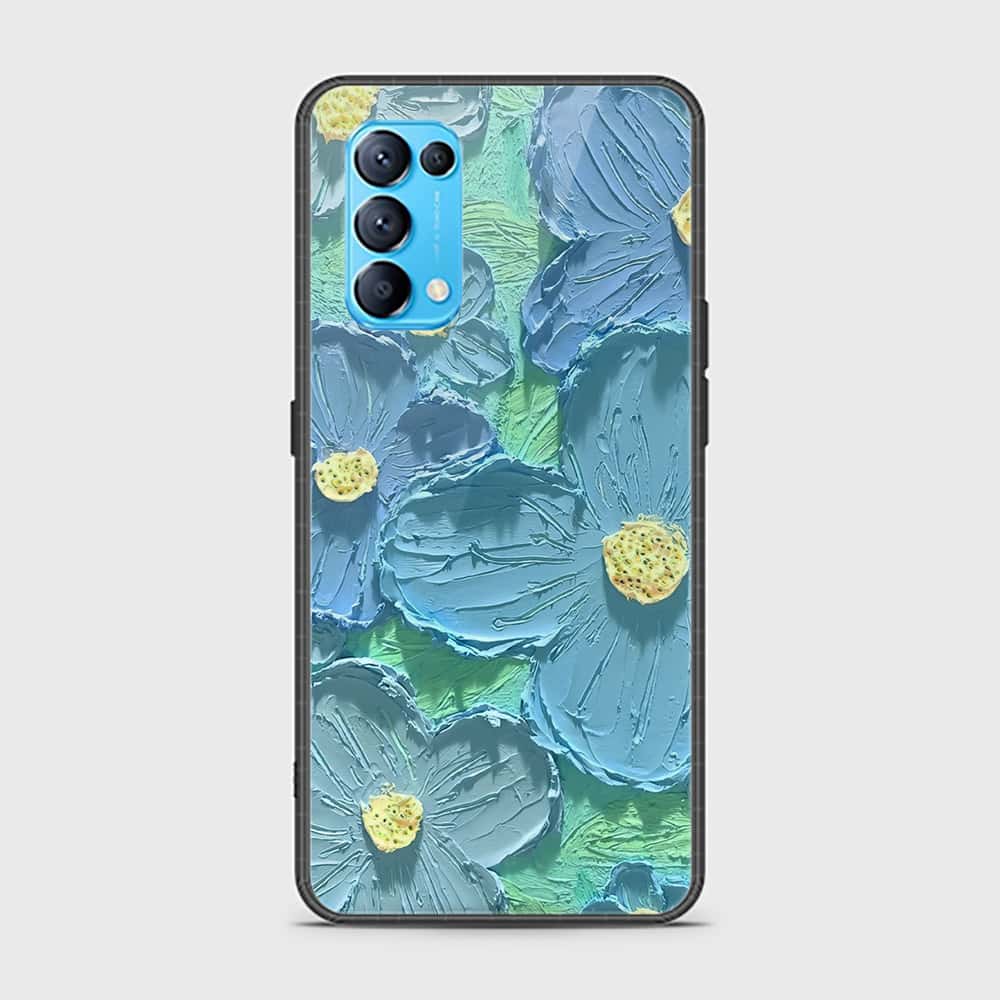 Oppo Reno 5 4G Cover - Floral Series - Design 1 - Purple & Aqua - HQ Ultra Shine Premium Infinity Glass Soft Silicon Borders Case