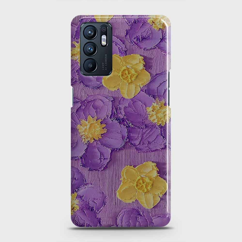 Oppo Reno 6 Cover - Floral Series - Design 8 - Purple & Yellow - Matte Finish - Snap On Hard Case with LifeTime Colors Guarantee