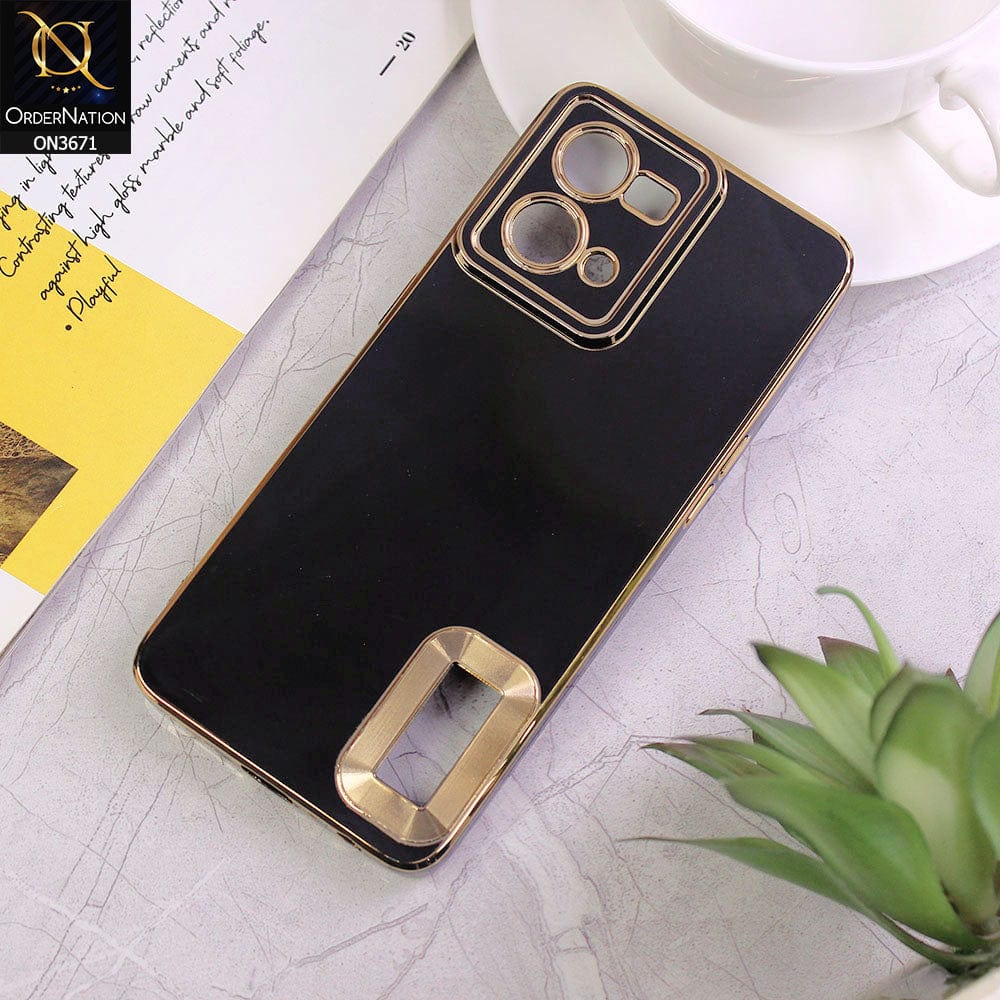 Oppo Reno 7 4G Cover - Black - All New Electroplating Borders With Logo Hole Protective Soft Silicon Case