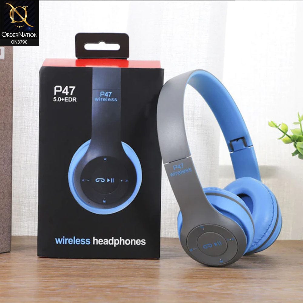 P47 Foldable Wireless Headphones 5.0 + EDR Support TF Card, MP3 Player Wireless - Blue Gray ( Wireless Headphone )