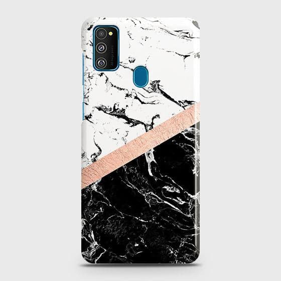 Printed Black & White Marble With Chic RoseGold Strip Case with Life Time Colors Guarantee For Samsung Galaxy M30s
