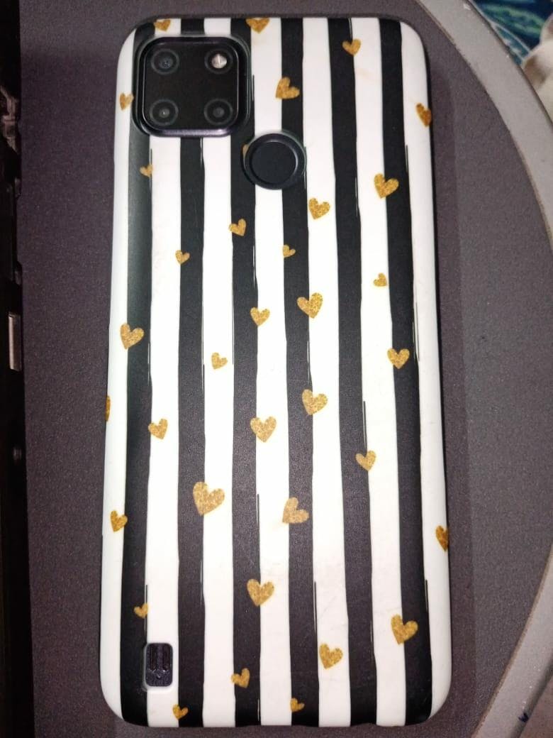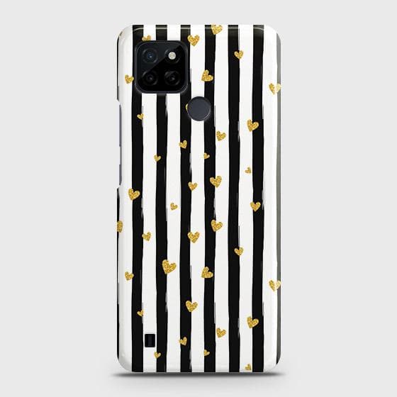 Realme C21Y Cover - Trendy Black & White Strips With Golden Hearts Printed Hard Case with Life Time Colors Guarantee