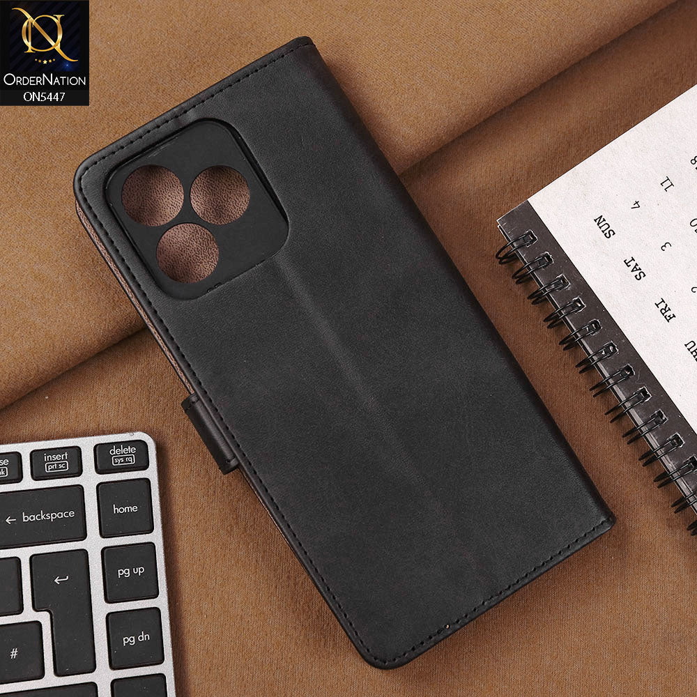 Realme C51 Cover - Black - Premium Leather Megantic Flip Book Covers With Card Holding Option