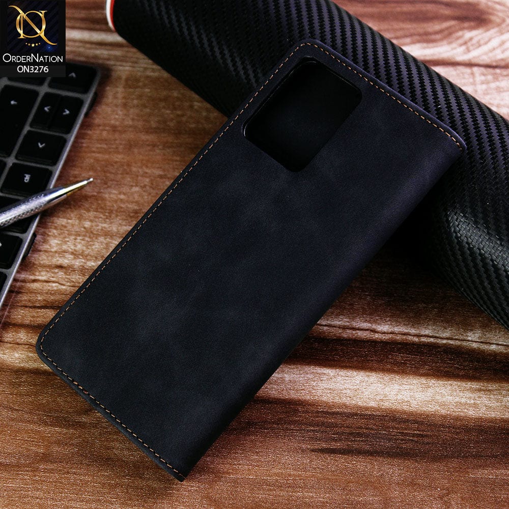 Realme V25 Cover - Black - ONation Business Flip Series - Premium Magnetic Leather Wallet Flip book Card Slots Soft Case
