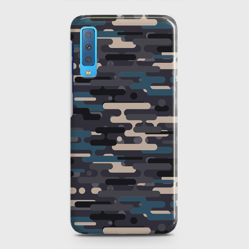 Samsung Galaxy A7 2018 Cover - Camo Series 2 - Blue & Grey Design - Matte Finish - Snap On Hard Case with LifeTime Colors Guarantee