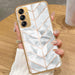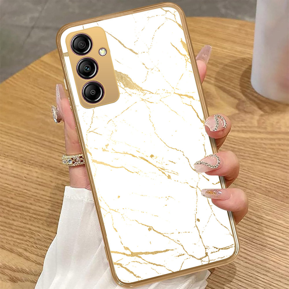 Samsung Galaxy A14 - White Marble Series 2 - HQ Premium Shine Durable Golden Electroplate Case