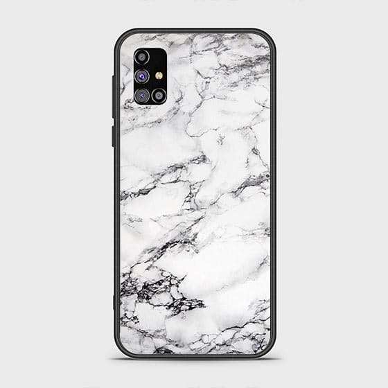 Samsung Galaxy A03s Cover - White Marble Series - HQ Ultra Shine Premium Infinity Glass Soft Silicon Borders Case