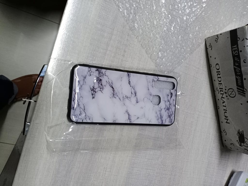 Samsung Galaxy A04e Cover - White Marble Series - HQ Ultra Shine Premium Infinity Glass Soft Silicon Borders Case