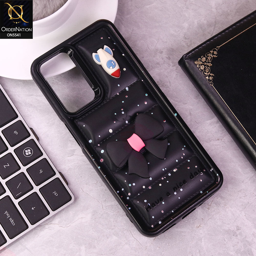Samsung Galaxy A05 Cover - Black - New 3D Bow Soft Puffer Case With Metal Camera Ring