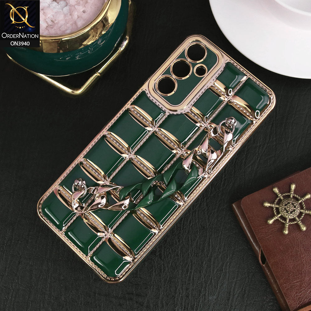 Samsung Galaxy A05s Cover - Dark Green - 3D Electroplating Square Grid Design Soft TPU Case With Chain Holder