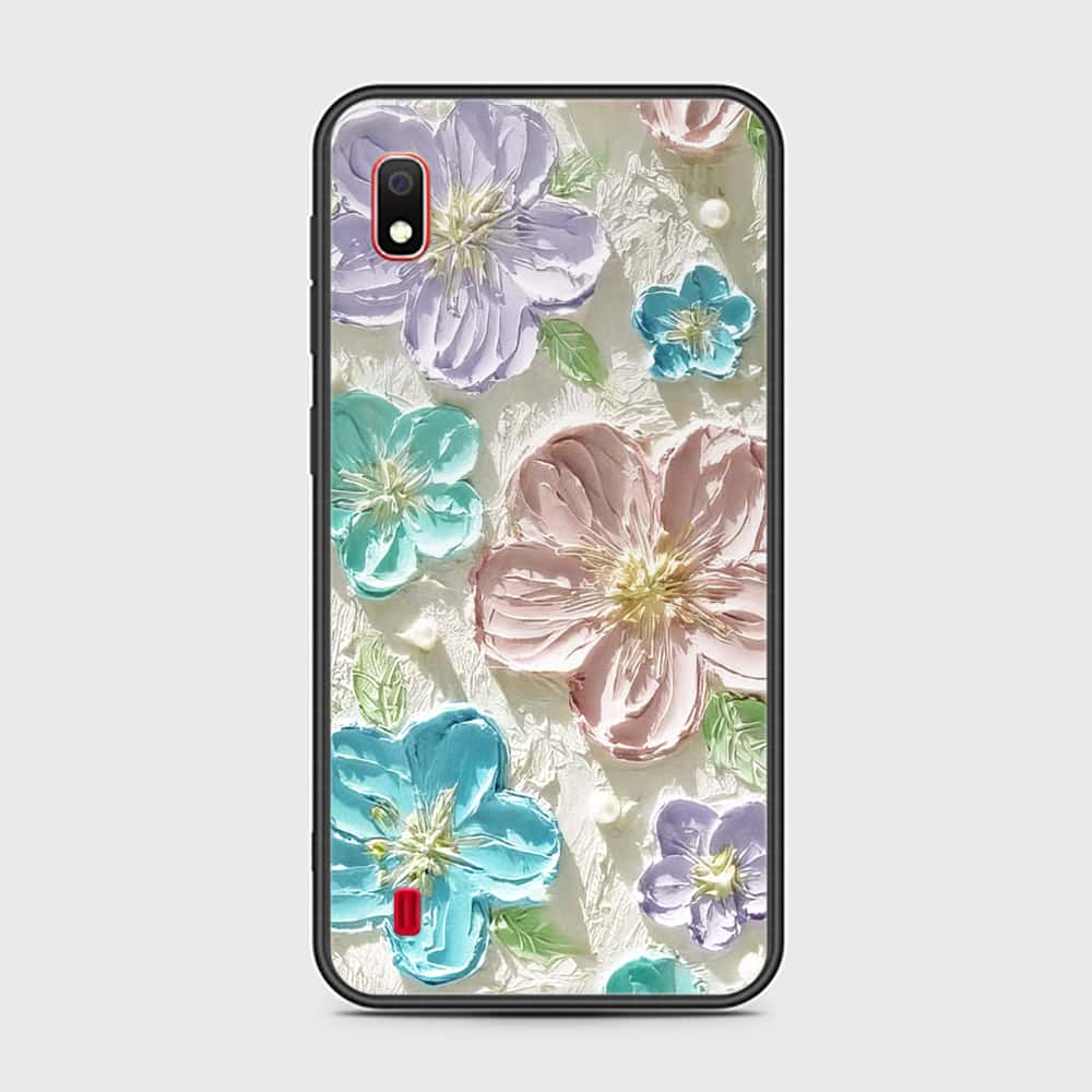 Samsung Galaxy A10 Cover - Floral Series - Design 14 - Blue & Purple- HQ Ultra Shine Premium Infinity Glass Soft Silicon Borders Case